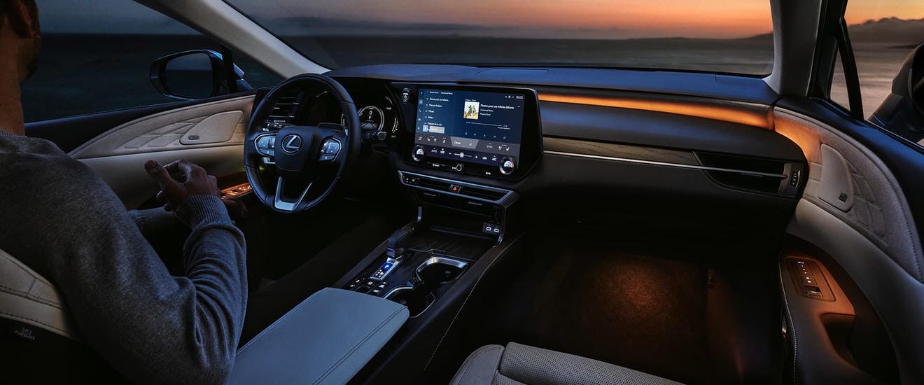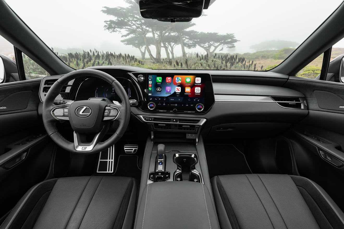 Thiết kế khoang lái “Tazuna” của Lexus RX tập trung vào sự tương tác trực quan giữa người lái và xe. Các nút điều khiển được bố trí hợp lý, dễ dàng tiếp cận, cùng với màn hình hiển thị đa thông tin trên kính lái (HUD) và cụm đồng hồ kỹ thuật số, giúp người lái nắm bắt mọi thông tin quan trọng mà không cần rời mắt khỏi đường. Ánh sáng nội thất tinh tế và các chi tiết ốp vật liệu cao cấp như gỗ, nhôm phay xước càng làm tăng thêm vẻ sang trọng và đẳng cấp cho không gian này.